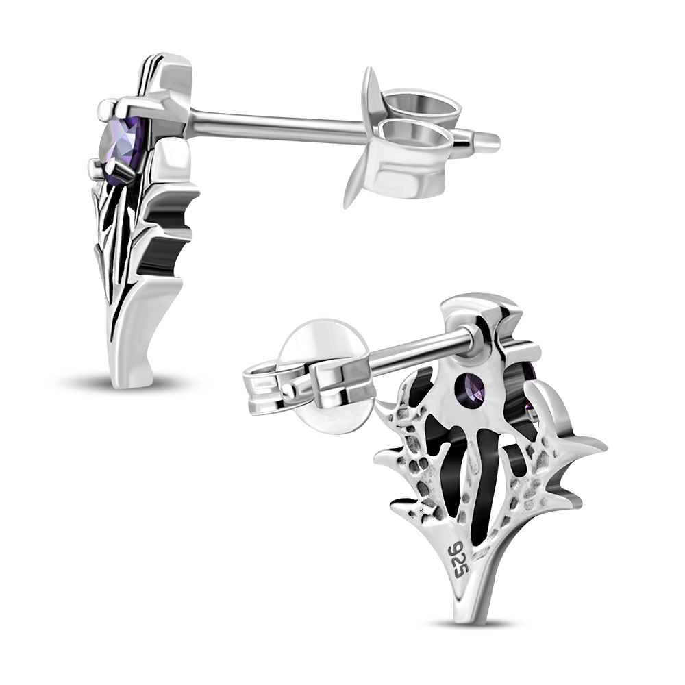 Theme: Amethyst CZ Thistle Stud Silver Earrings.