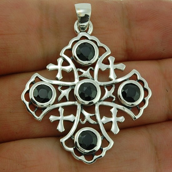 Jerusalem Cross Black Onyx Silver Pendant, p266