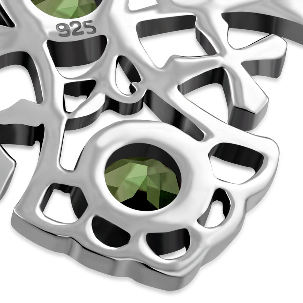 Large Peridot Stone Jerusalem Cross Silver Pendant