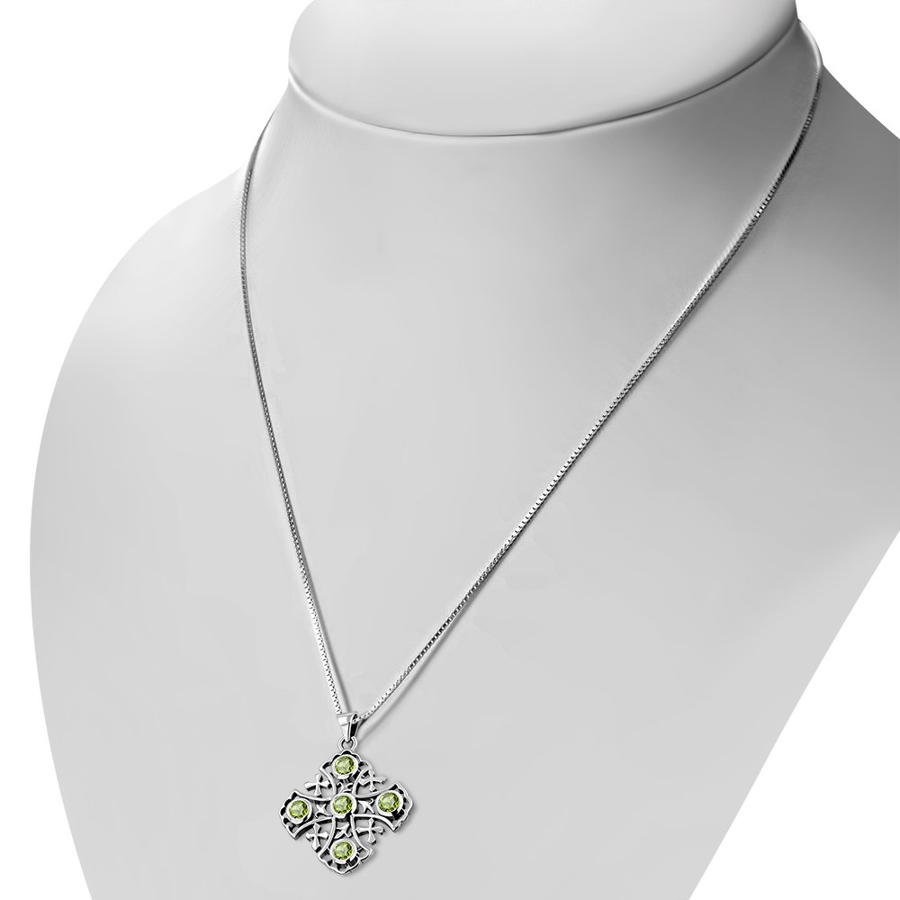 Theme: Large Peridot Stone Jerusalem Cross Silver Pendant.