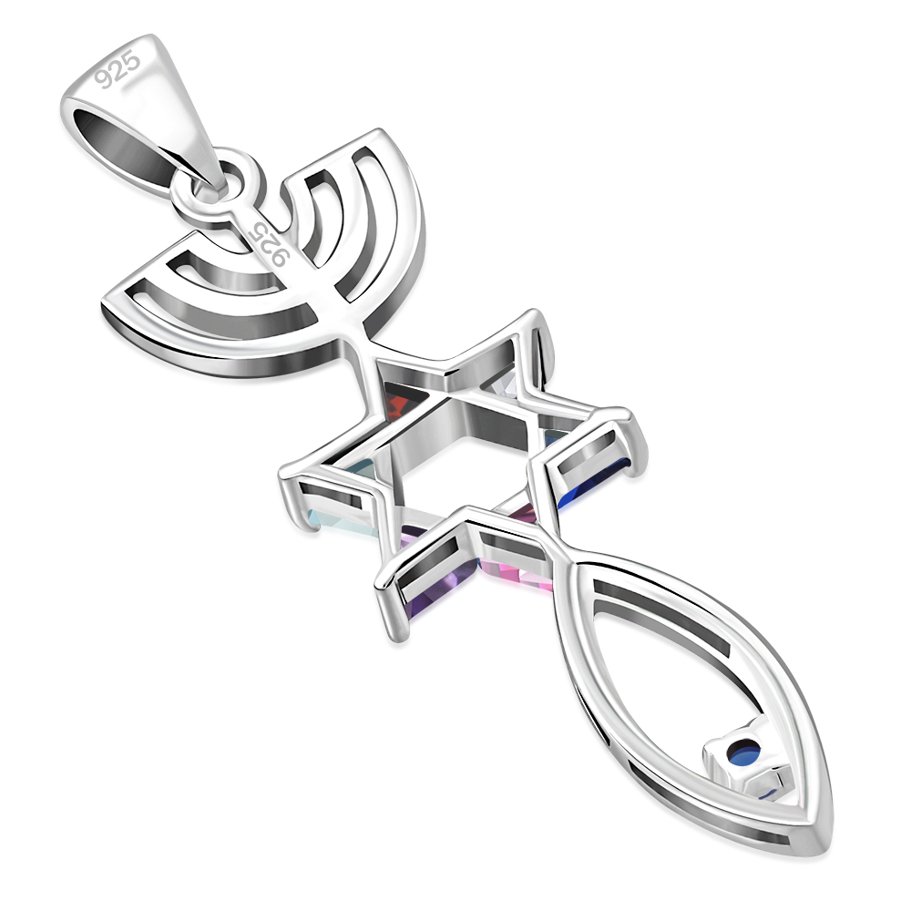 as: Sterling Silver Mix Color CZ Messianic Seal of Jerusalem Pendant,