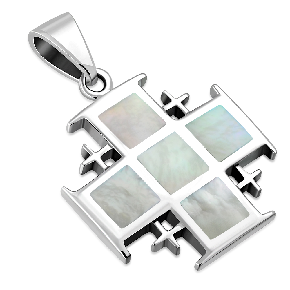 Theme: Mother of Pearl Jerusalem Cross Silver Pendant.