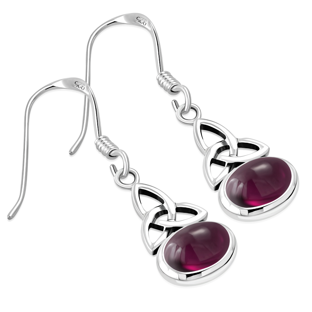 Garnet Stone Celtic Trinity Knot Silver Earrings