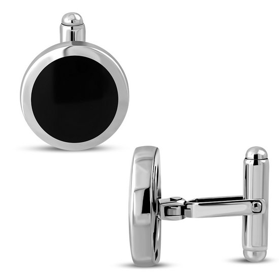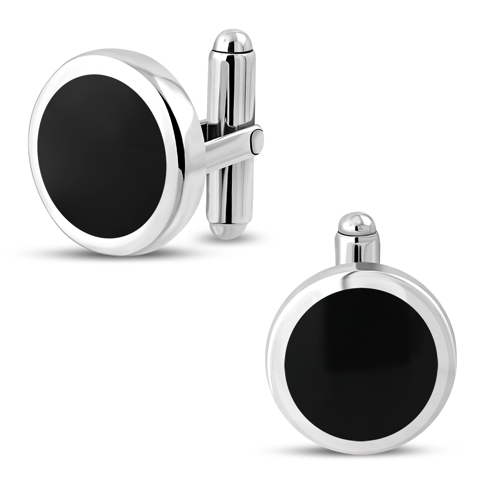 Theme: Sterling Silver Black Onyx Round Cufflinks.