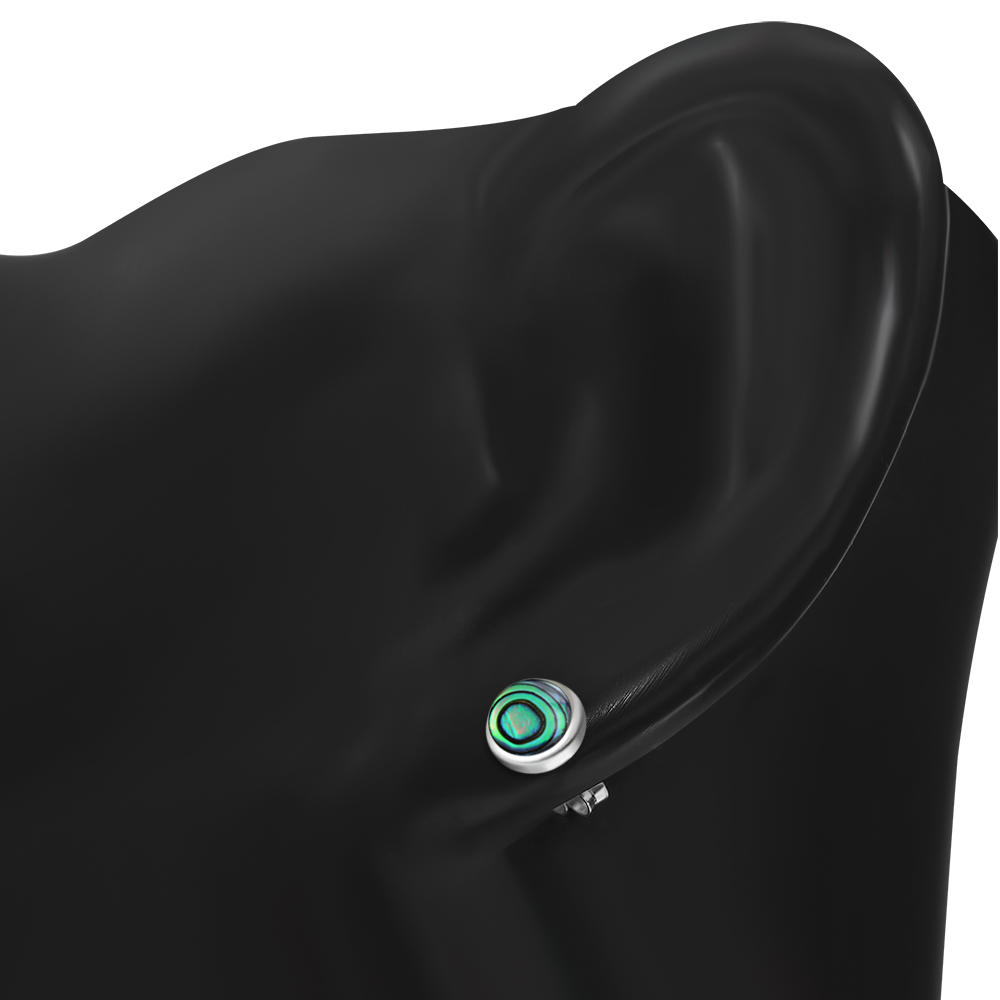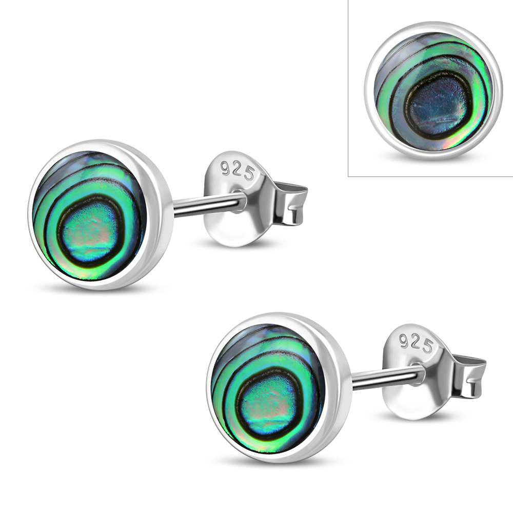 Theme: Abalone Simple Round Silver Stud Earrings.
