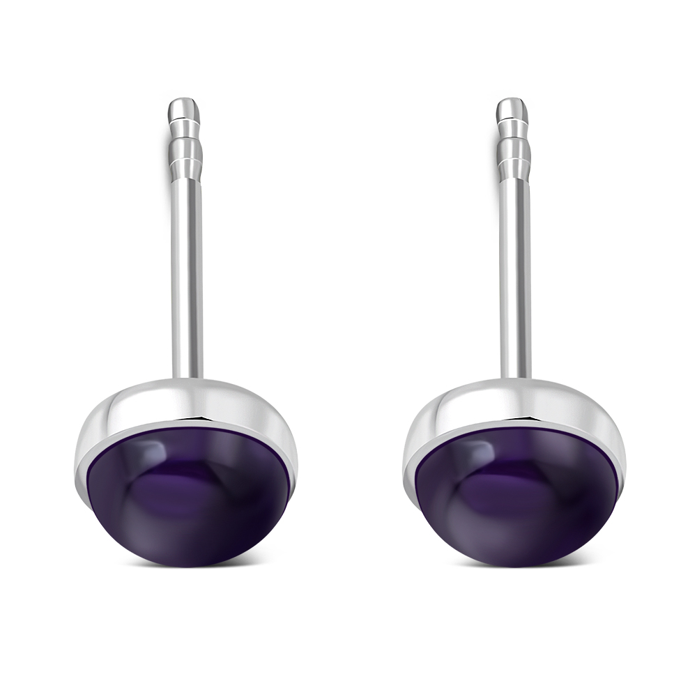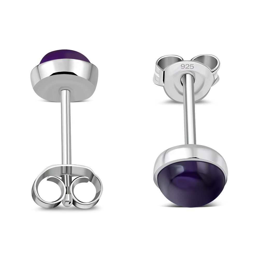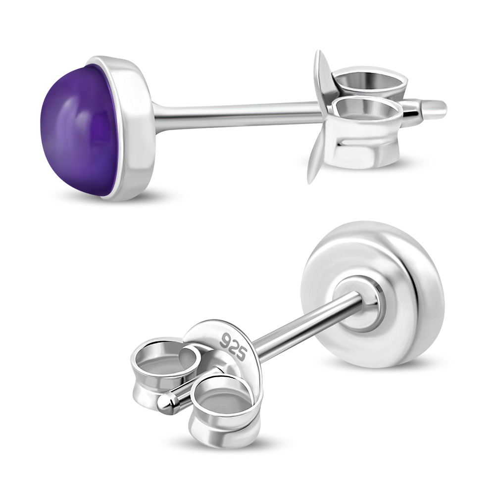 Theme: Amethyst Stone Round Sterling Silver Stud Earrings
