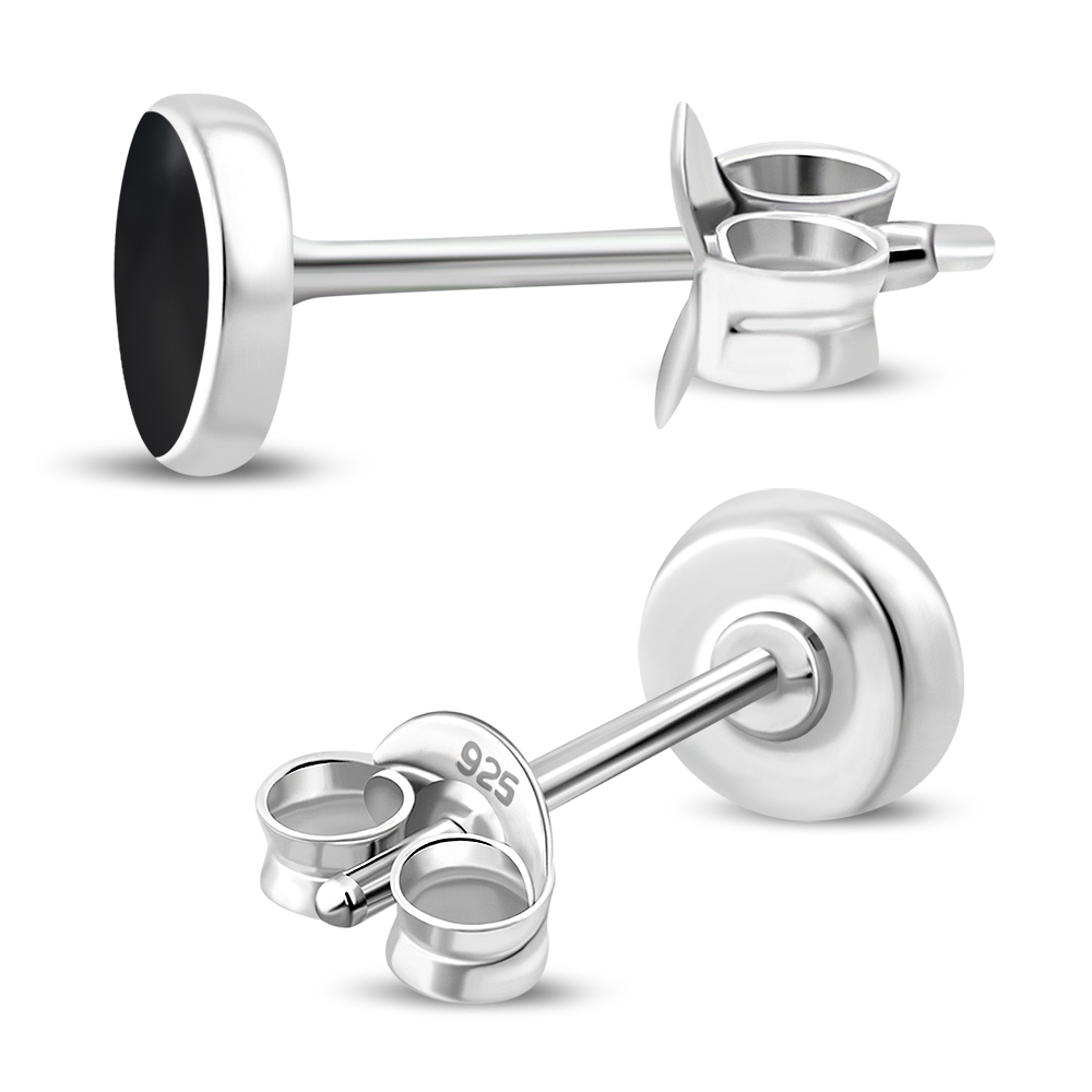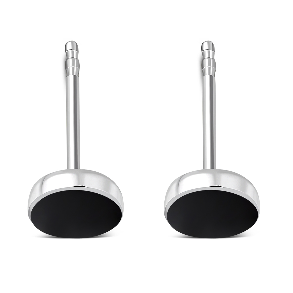 Theme: Black Onyx Round Sterling Silver Stud Earrings