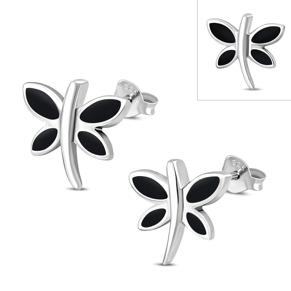 Theme: Butterfly Stud Black Onyx Sterling Silver Earrings.