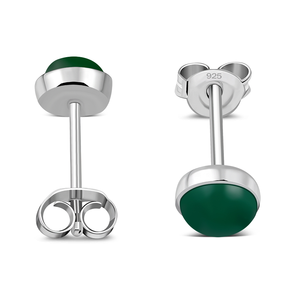 Theme: Green Agate Stone Round Sterling Silver Stud Earrings