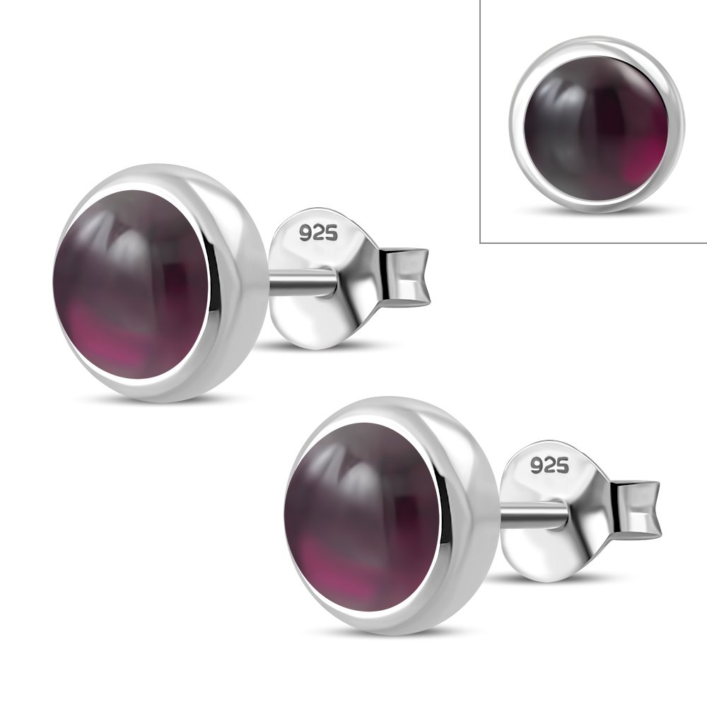 Theme: Garnet Stone Round Silver Stud Earrings.