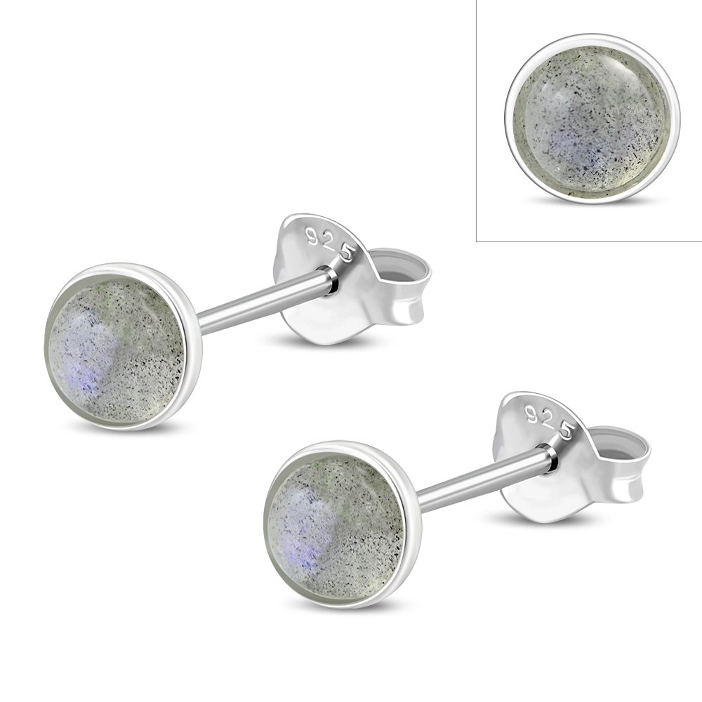 Theme: Labradorite Stone Round Sterling Silver Stud Earrings