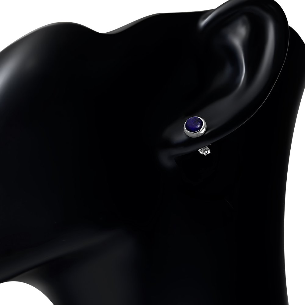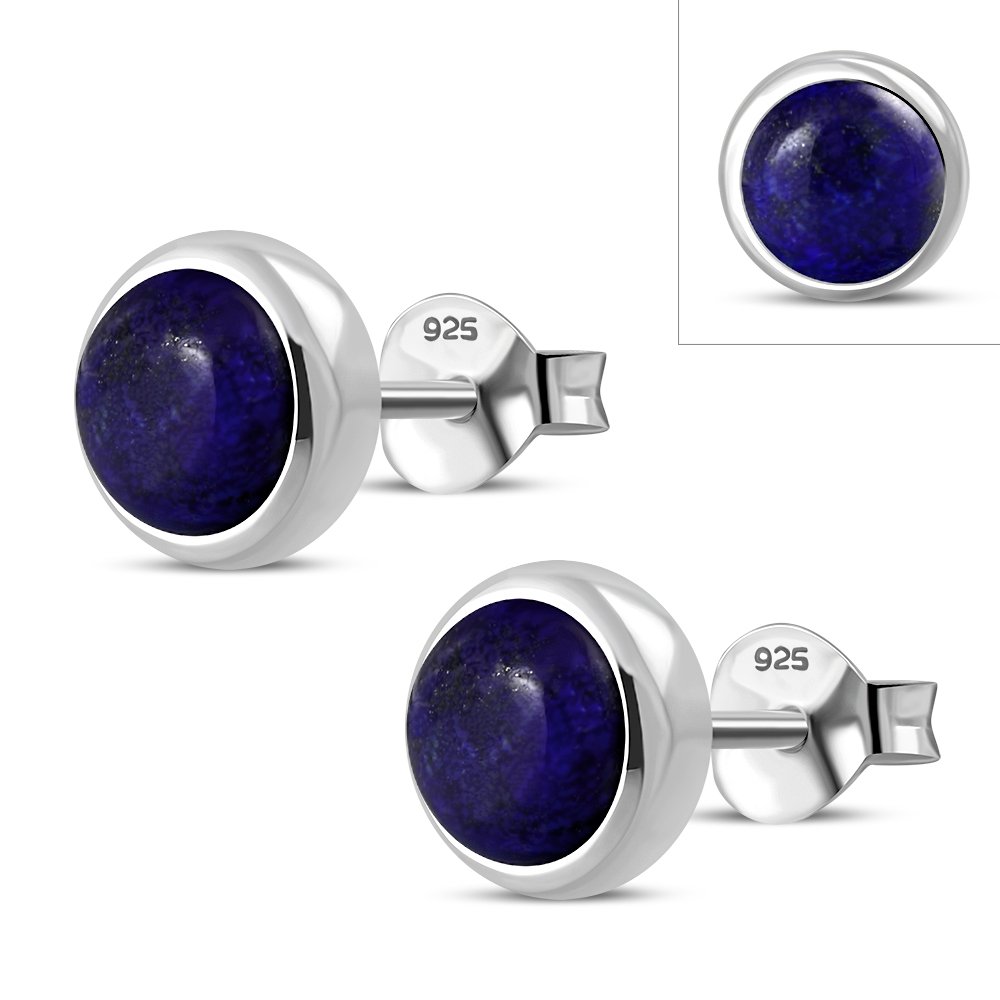 Theme: Lapis Lazuli Stone Round Silver Stud Earrings.