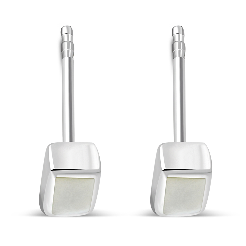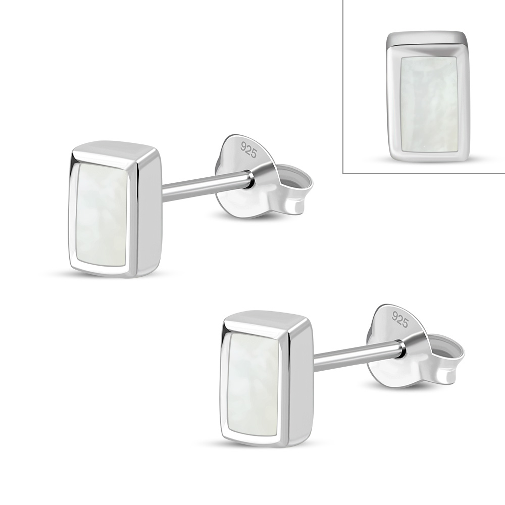 Theme: Mother of Pearl Rectangle Silver Stud Earrings.
