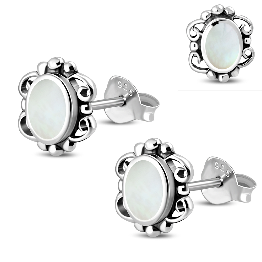 Theme: Mother of Pearl Sterling Silver Stud Earrings.