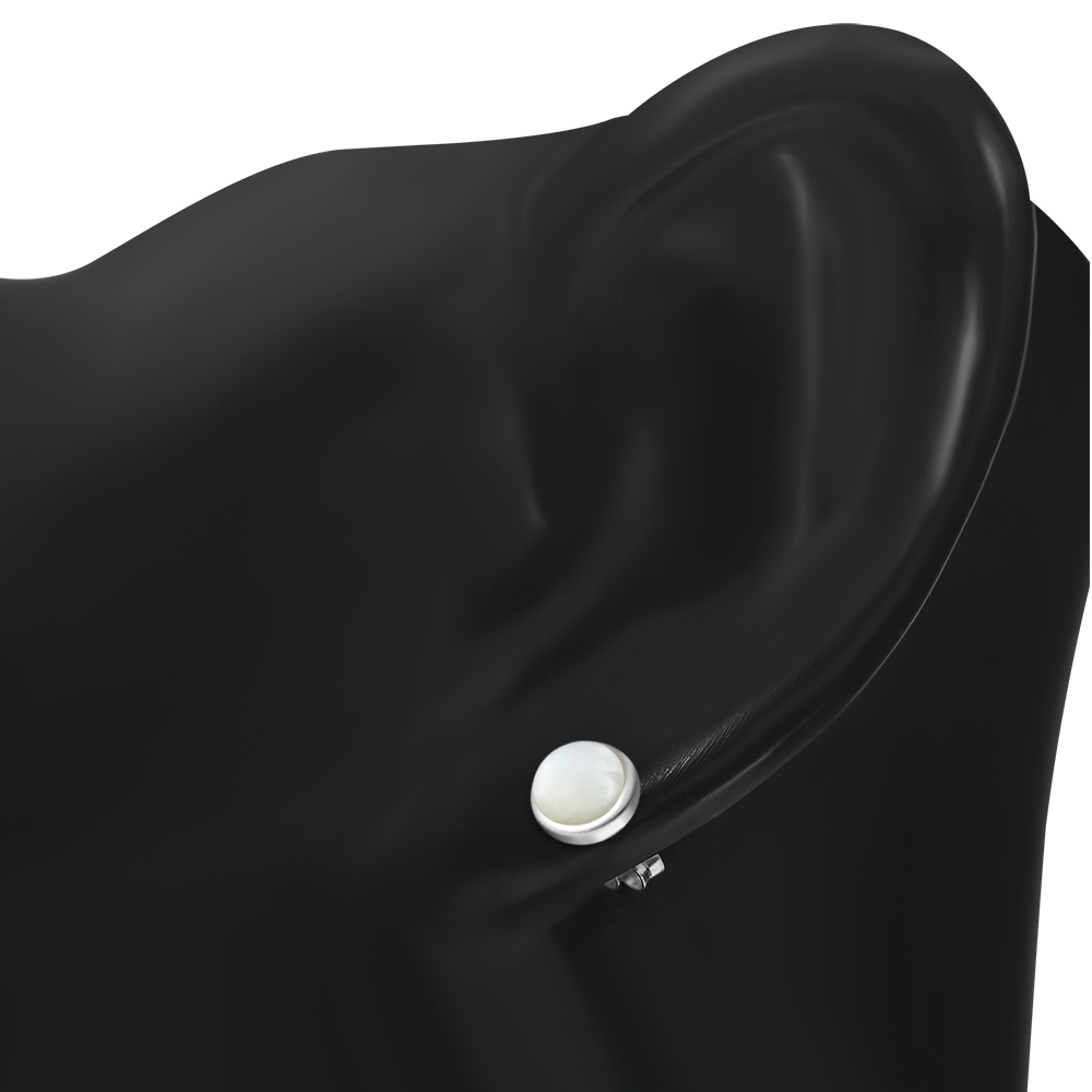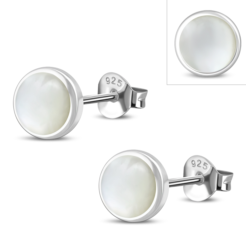 Theme: Mother of Pearl Simple Round Silver Stud Earrings.