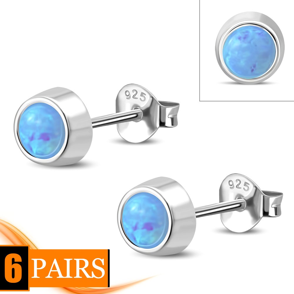 Theme: Synthetic Opal Sterling Silver Stud Earrings.