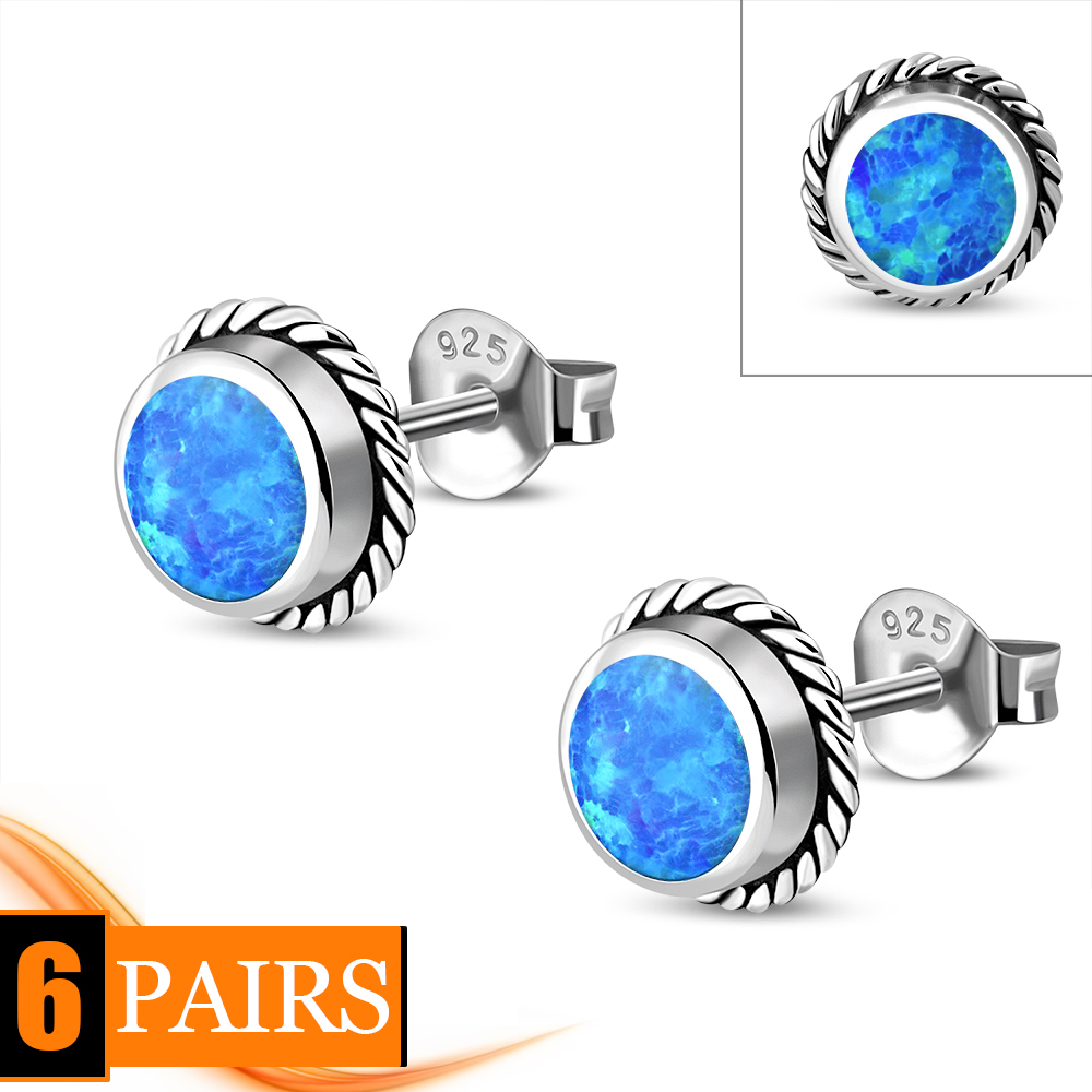 Theme: Synthetic Opal Round Stud Silver Earrings.