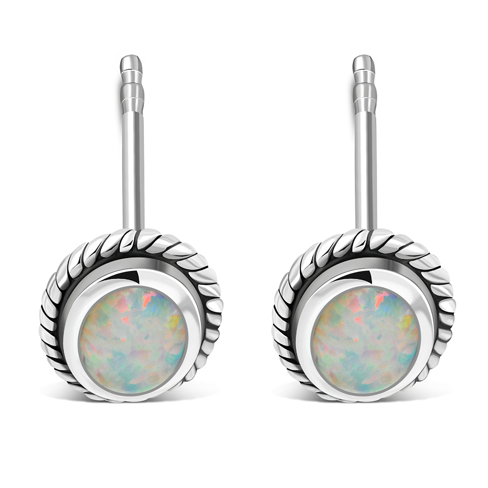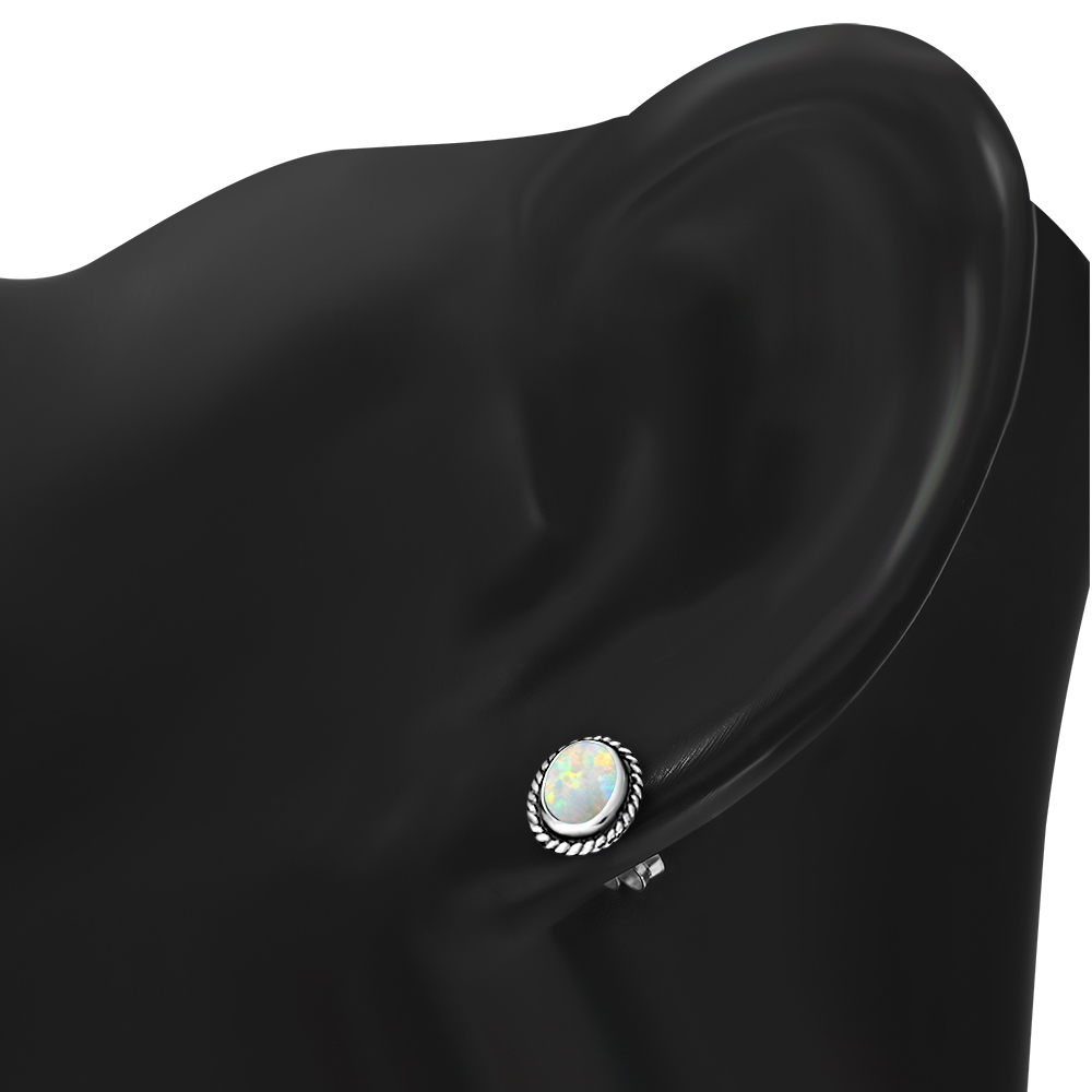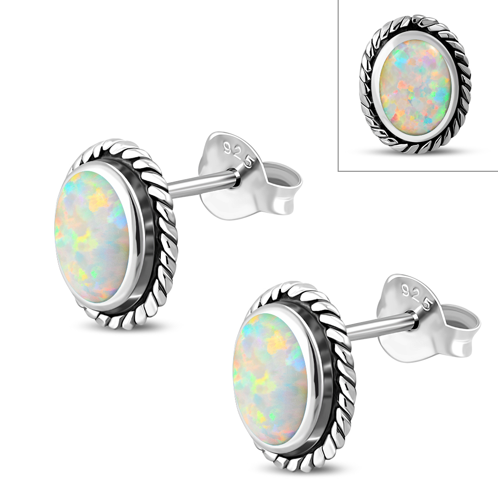 Oval Synthetic Milky Opal Silver Stud Earrings