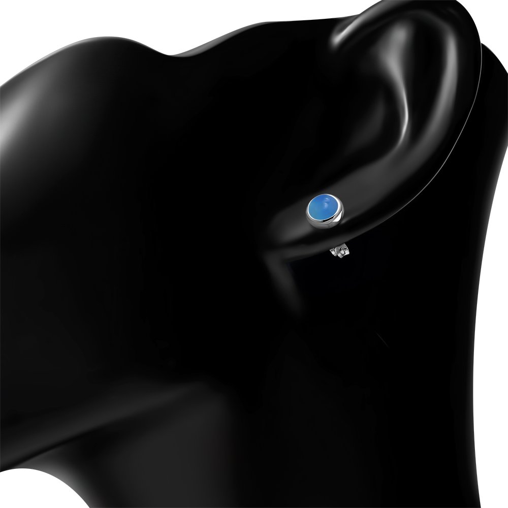 Theme: Blue Agate Round Sterling Silver Stud Earrings.