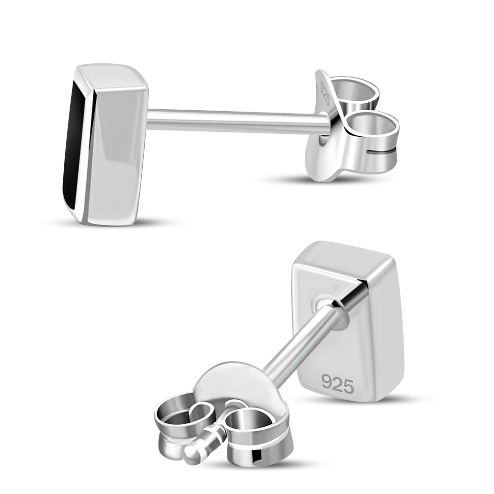 Theme: Black Onyx Rectangle Silver Stud Earrings.