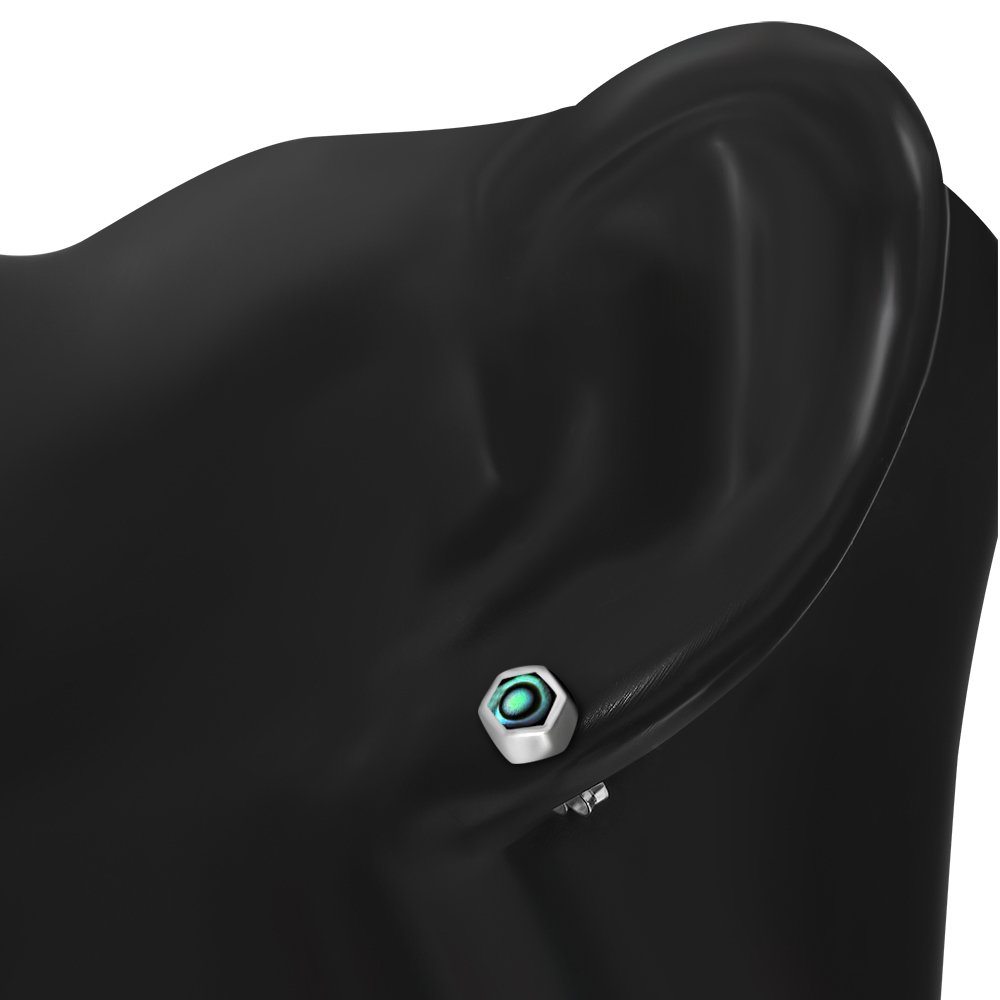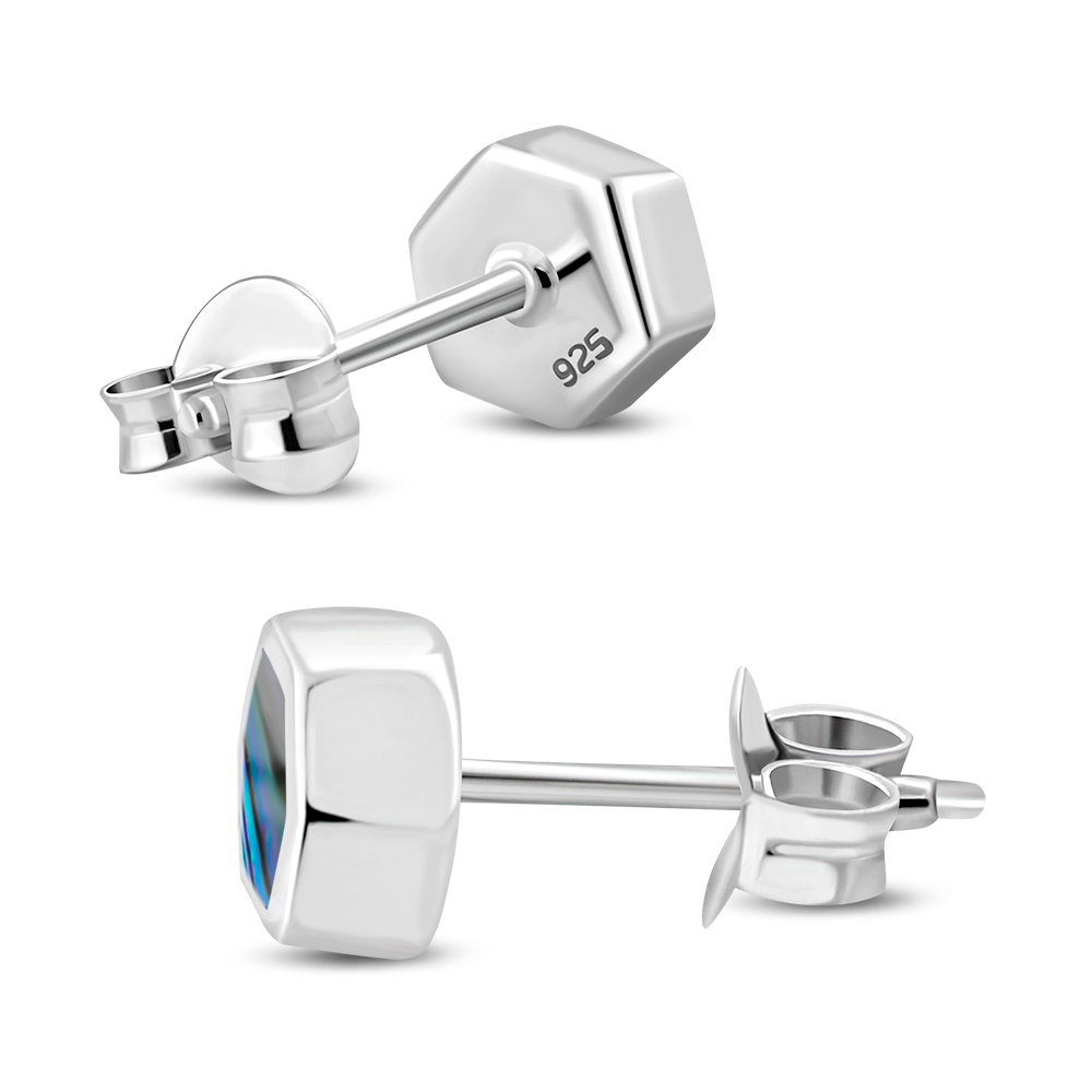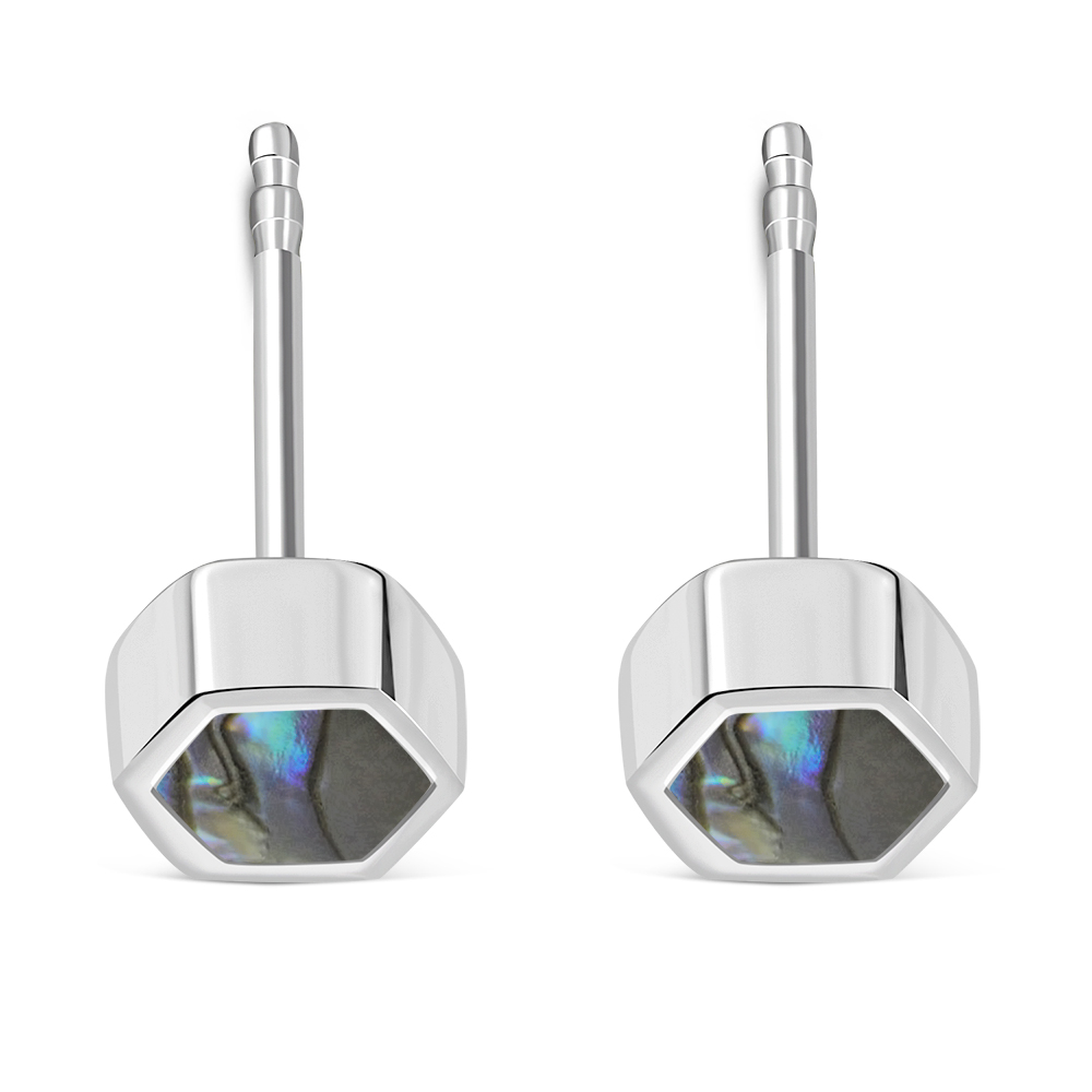 Theme: Abalone Shell Hexagon Silver Stud Earrings.