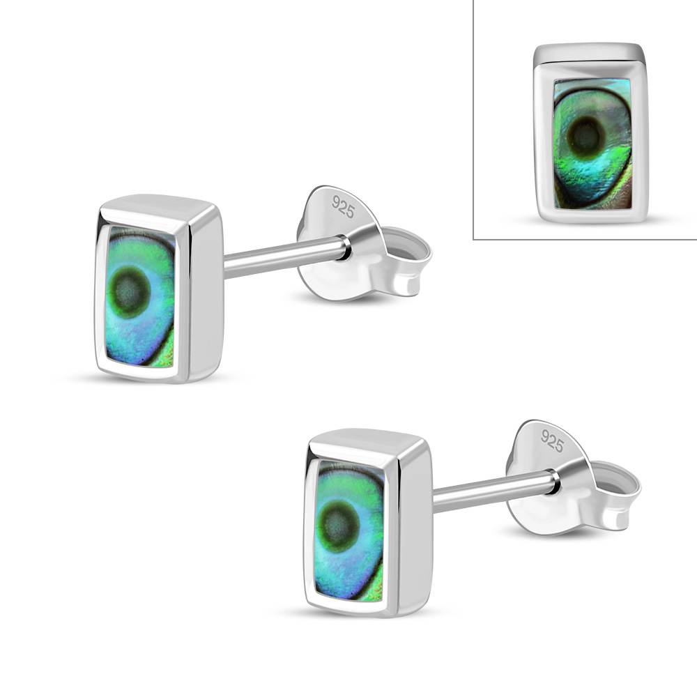 Theme: Abalone Shell Rectangle Silver Stud Earrings.