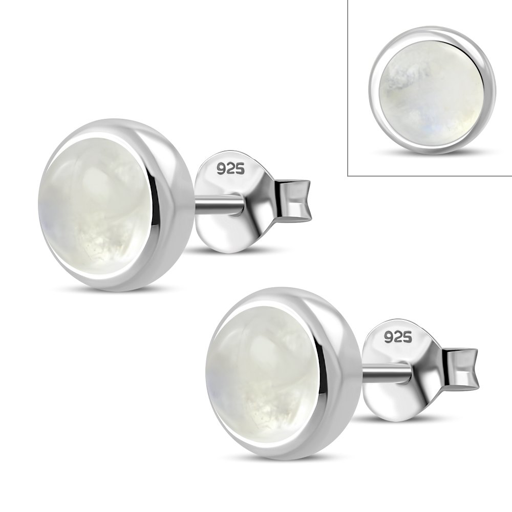 Theme: Rainbow Moonstone Round Silver Stud Earrings.