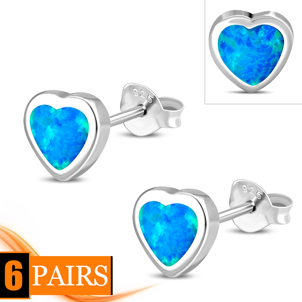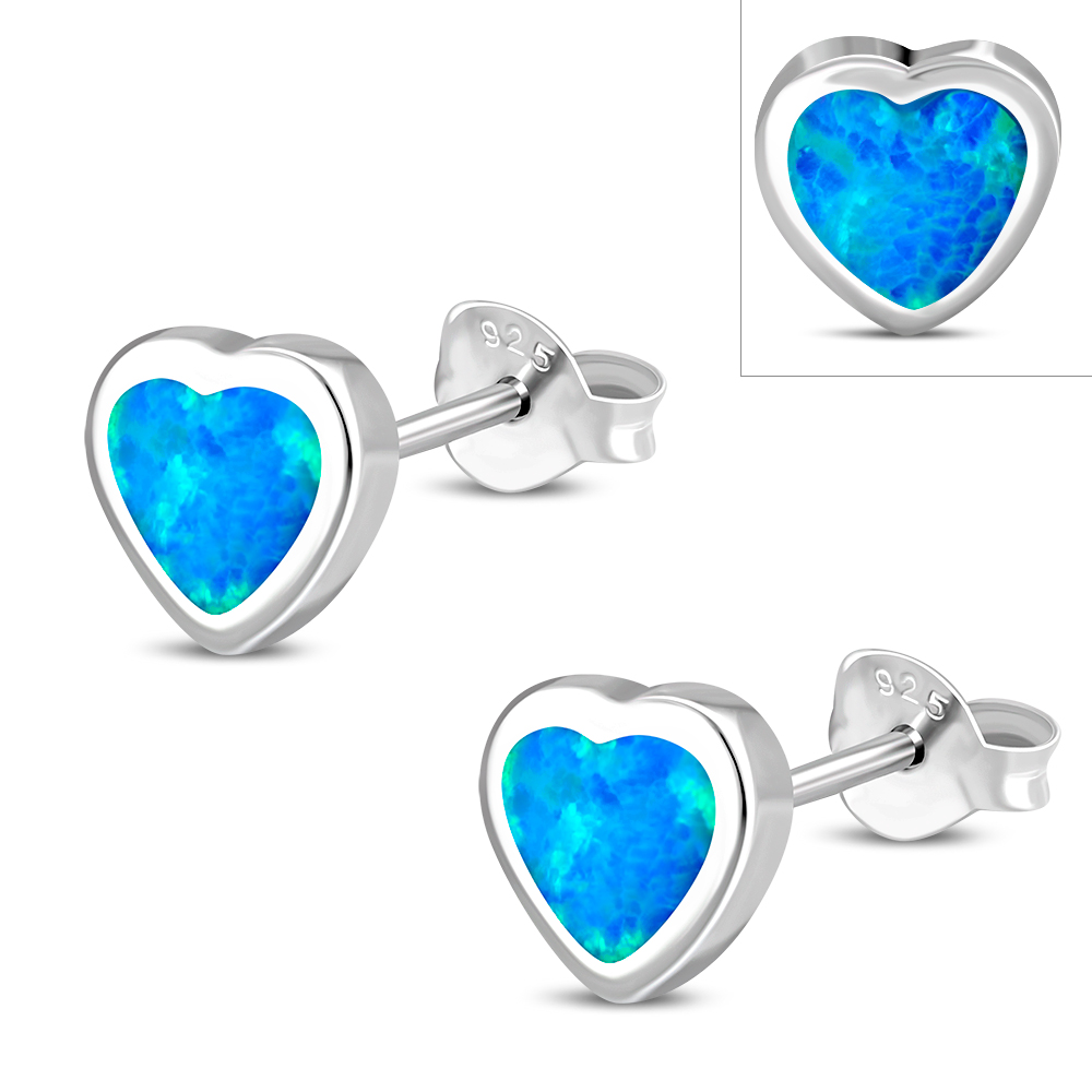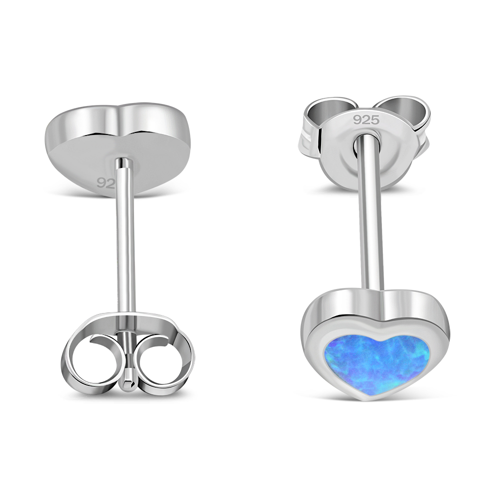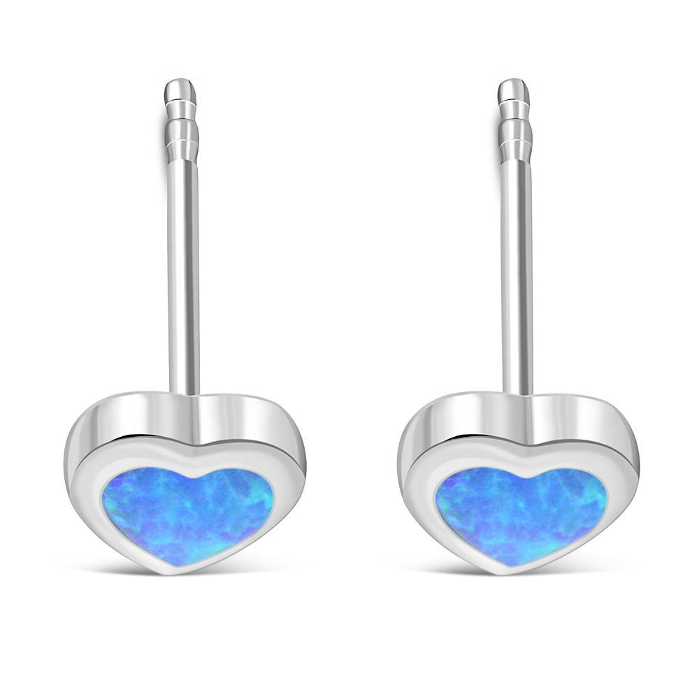 Theme: Synthetic Opal Heart Silver Stud Earrings.