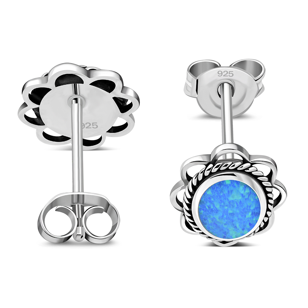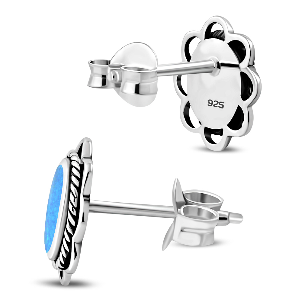 Synthetic Opal Oval Braided Edge Silver Stud Earrings