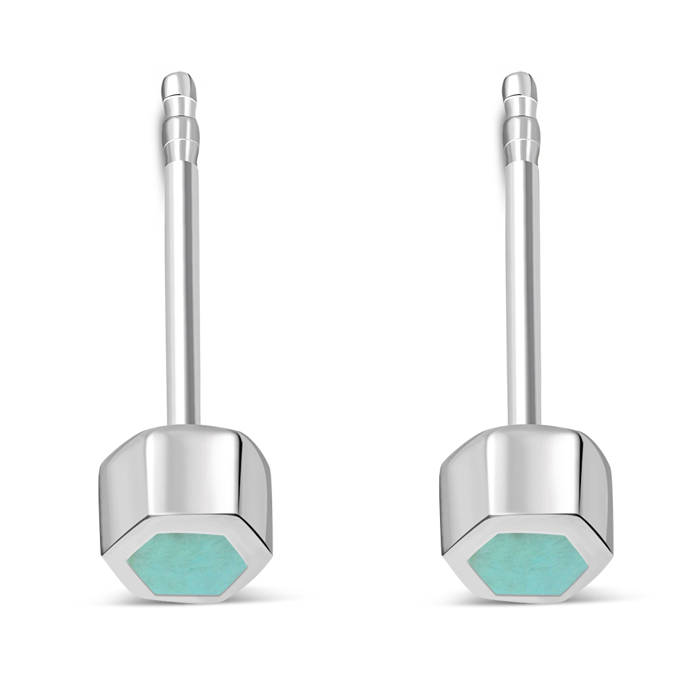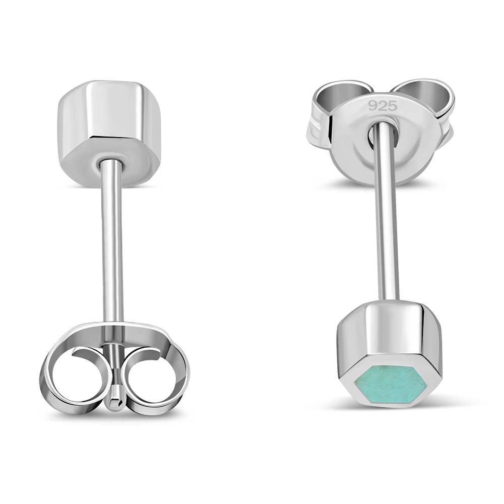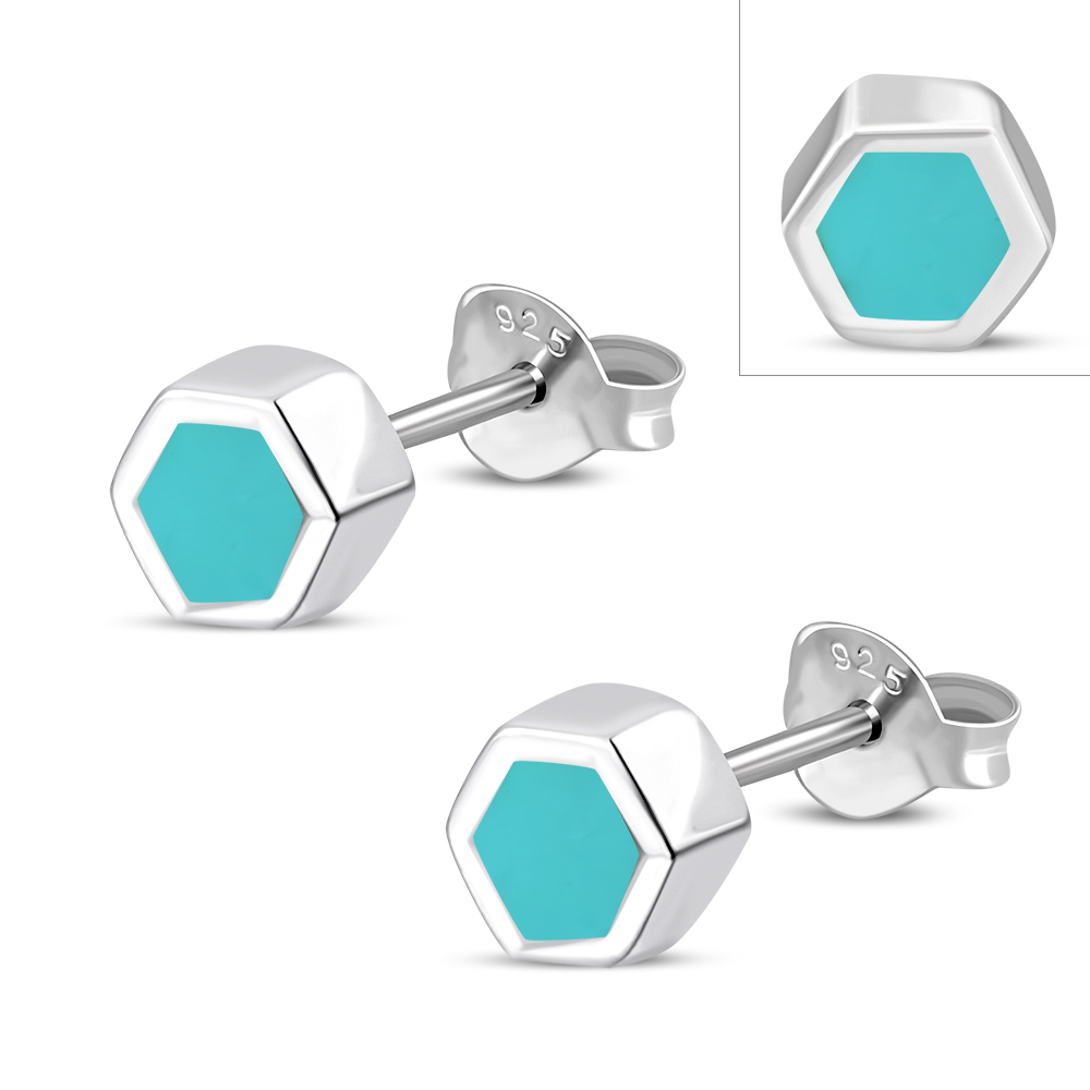 Theme: Tiny Turquoise Hexagon Silver Stud Earrings.