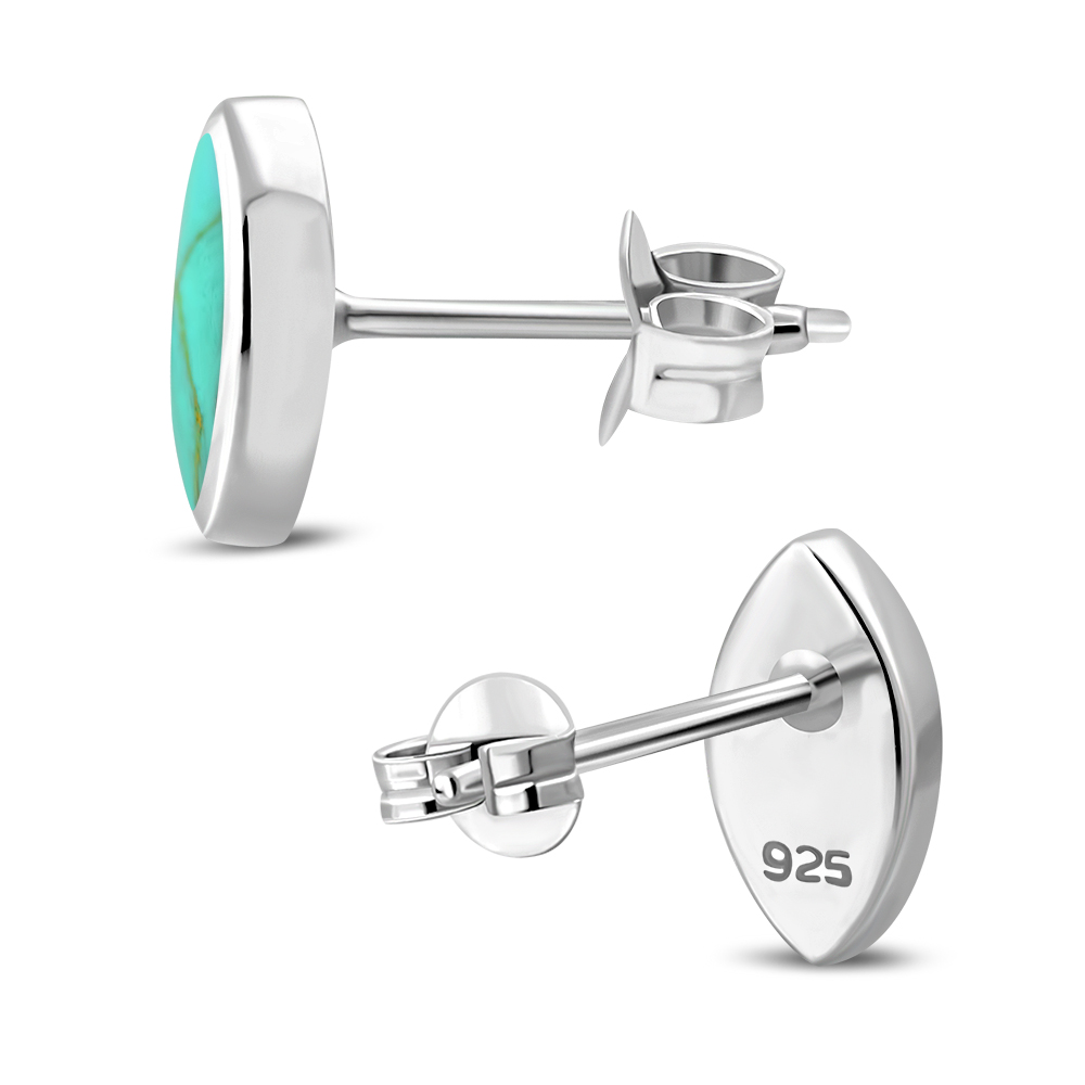 Theme: Turquoise Lens Shaped Sterling Silver Stud Earrings