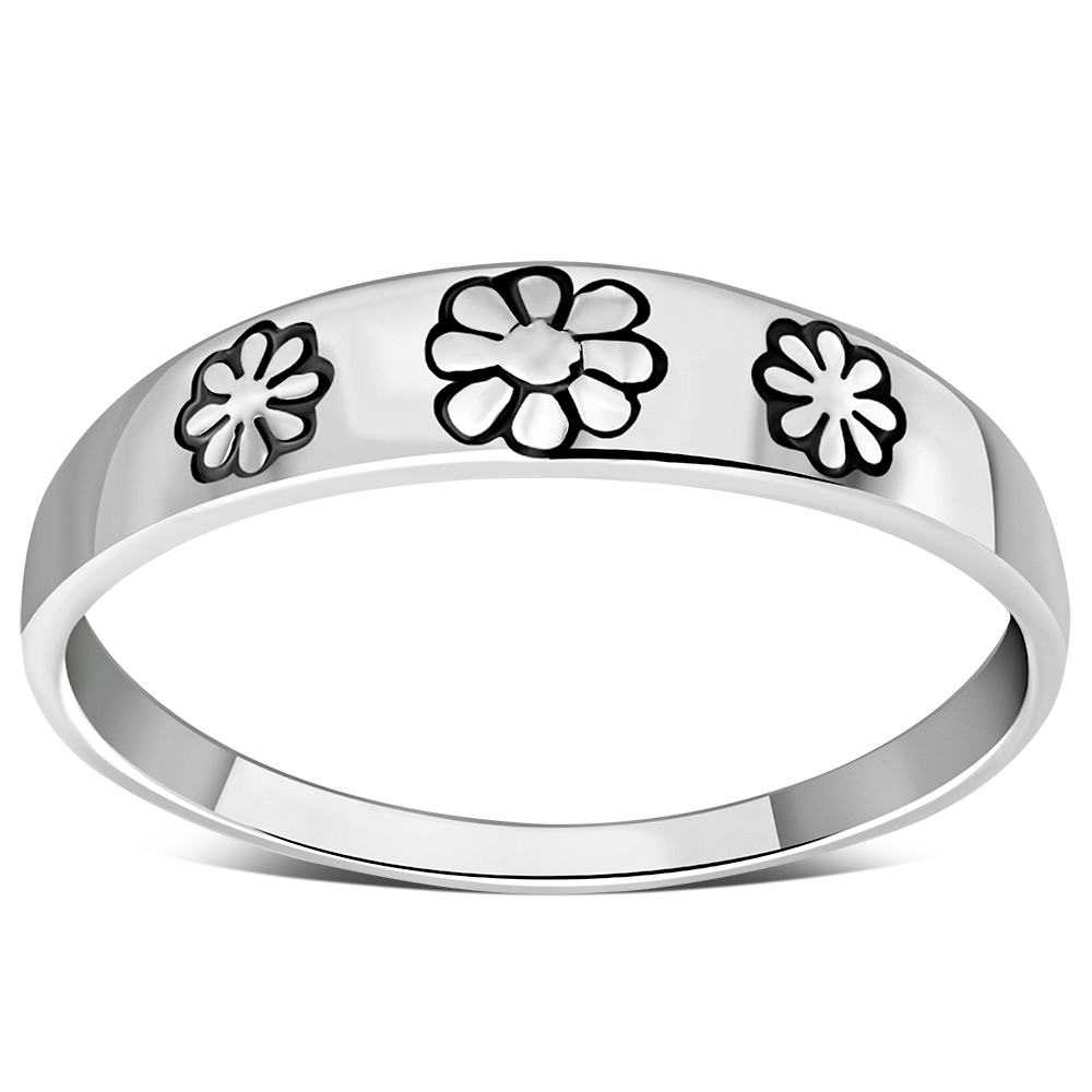 Plain Simple Flowers Silver Band Ring, rp745
