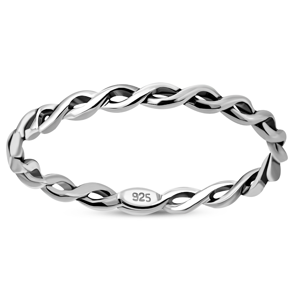Twisted Thin Plain Silver Band Ring, rp844