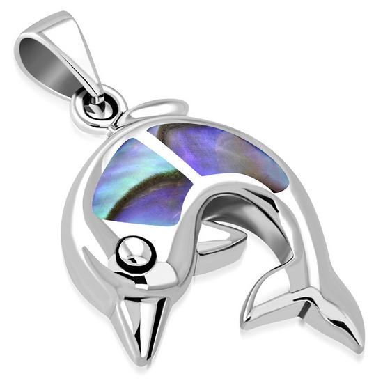 Theme: Abalone Shell Dolphin Silver Pendant.