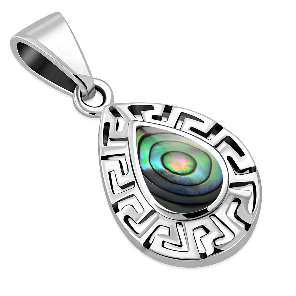Theme: Abalone Shell Drop Greek Key Silver Pendant.