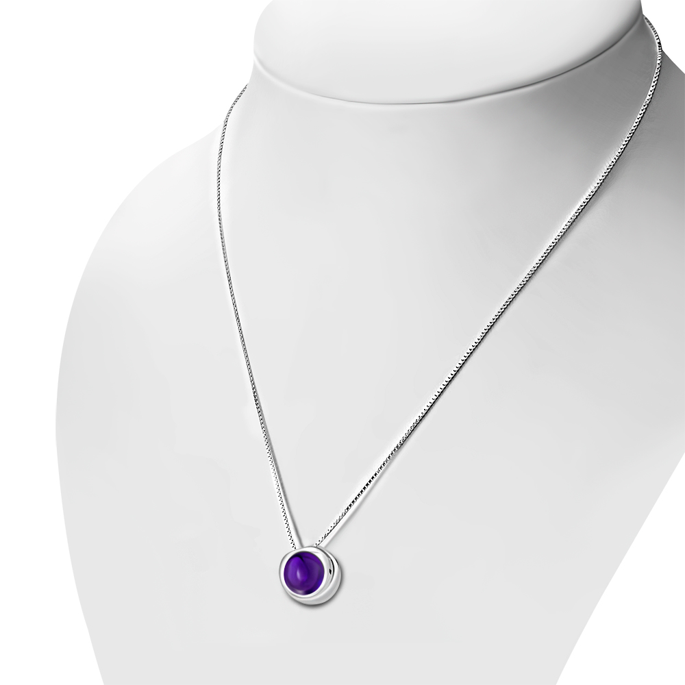Amethyst Stone Round Silver Pendant