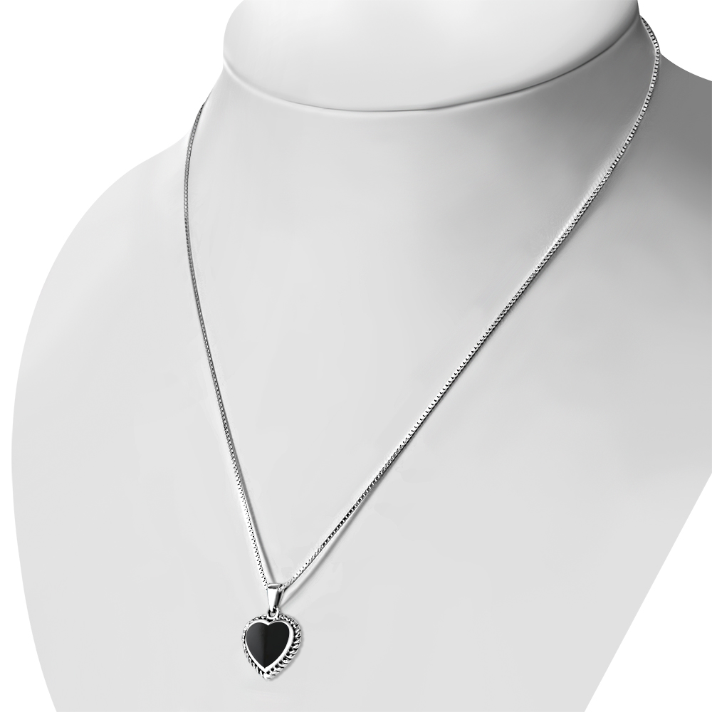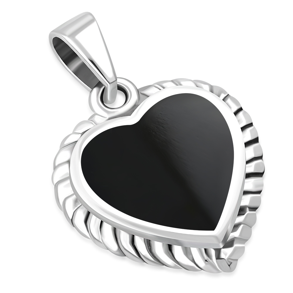 Black Onyx Love Heart Ethnic Silver Pendant