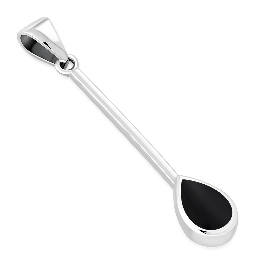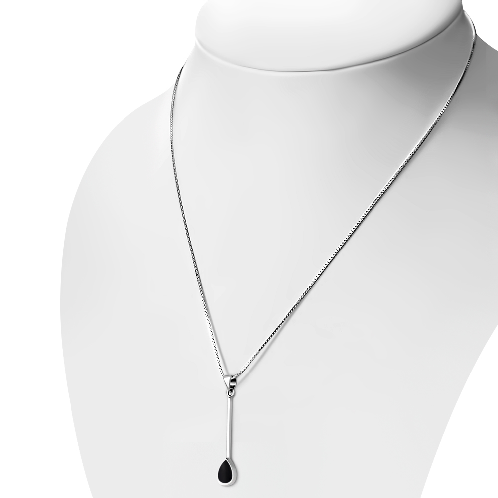 Black Onyx Long Drop Pear Shaped Sterling Silver Pendant