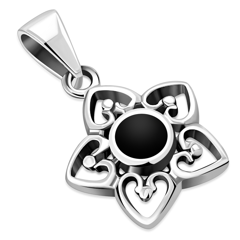 Theme: Black Onyx Petal Hearts Silver Pendant.