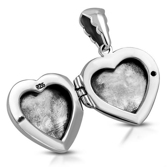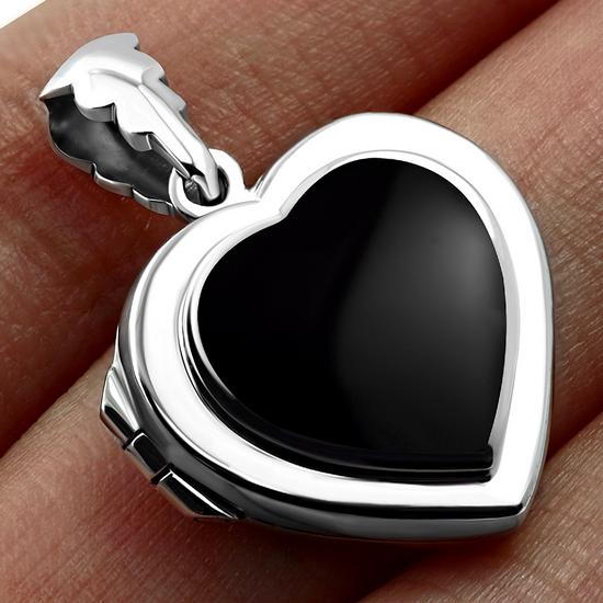 Heart Shaped Locket Silver Pendant w/ Black Onyx