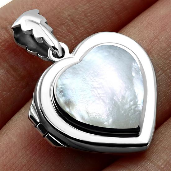 Heart Shaped Locket Silver Pendant w/ Mother of Pearl