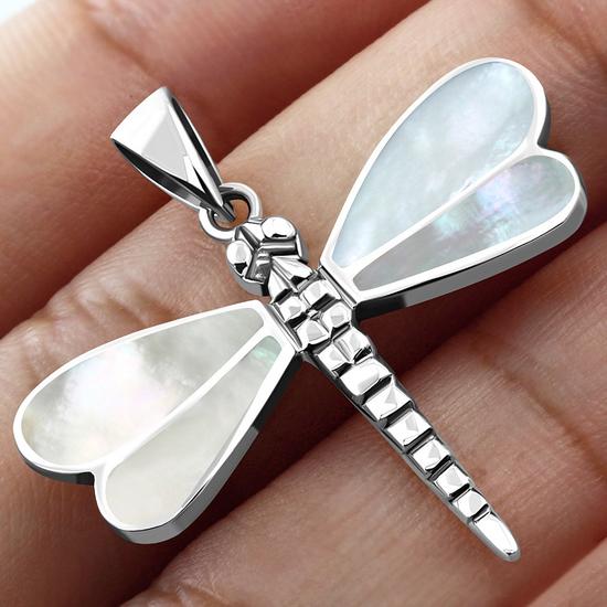 Theme: Mother of Pearl Dragonfly Silver Pendant.