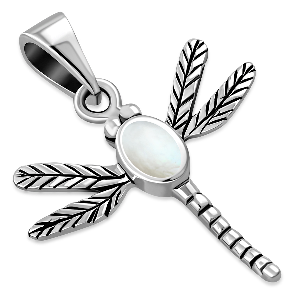 Theme: Mother of Pearl Dragonfly Sterling Silver Pendant.