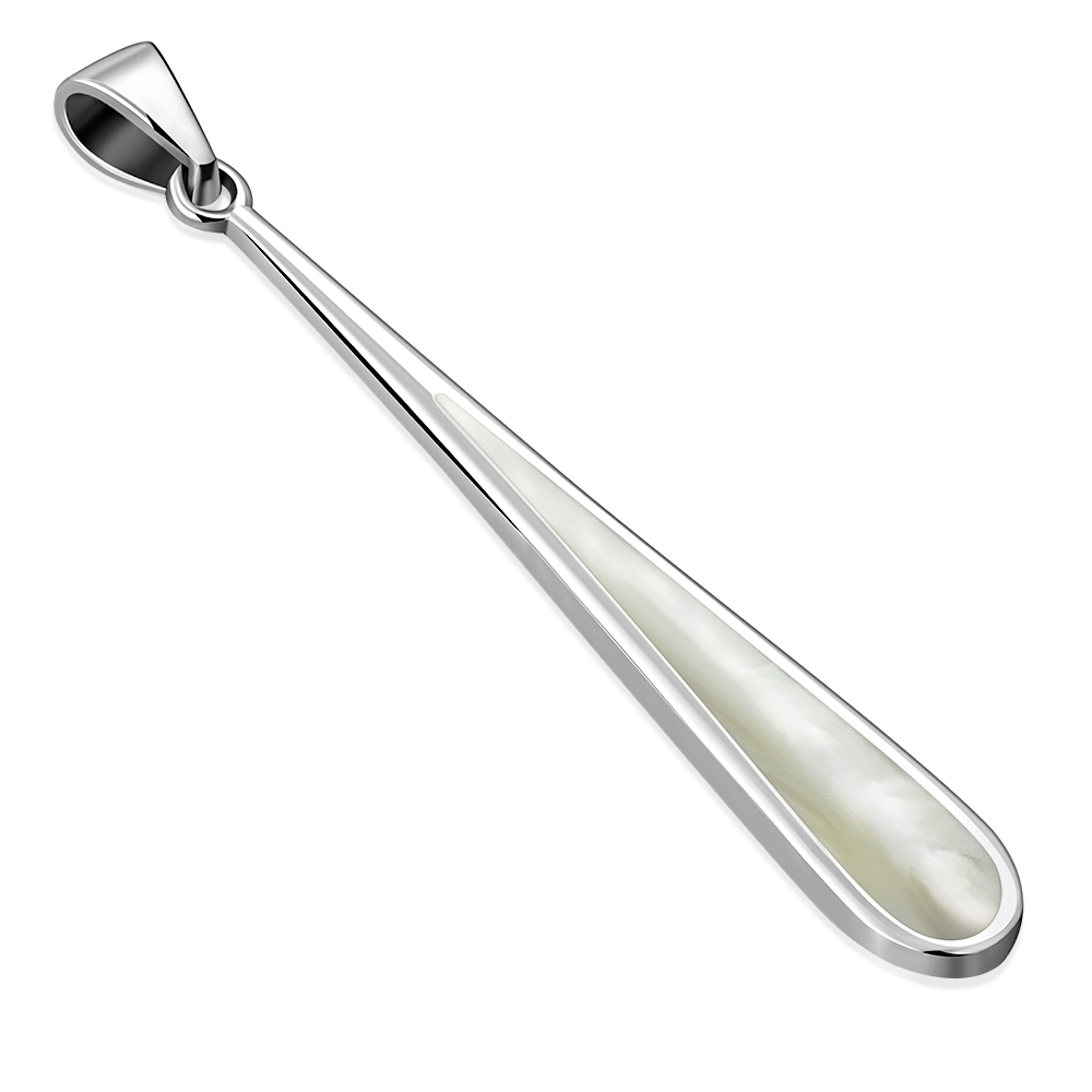 Theme: Long Mother of Pearl Drop Silver Pendant.