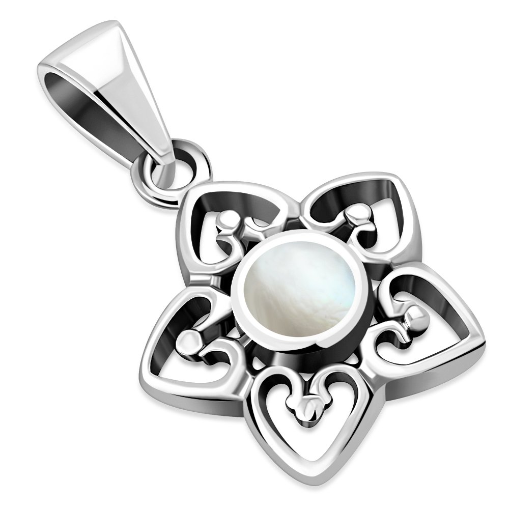 Theme: Mother of Pearl Petal Hearts Silver Pendant.