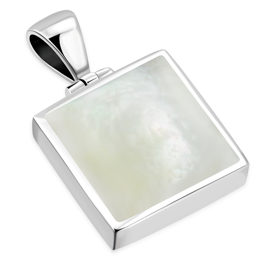 Theme: Mother of Pearl Square Sterling Silver Pendant.
