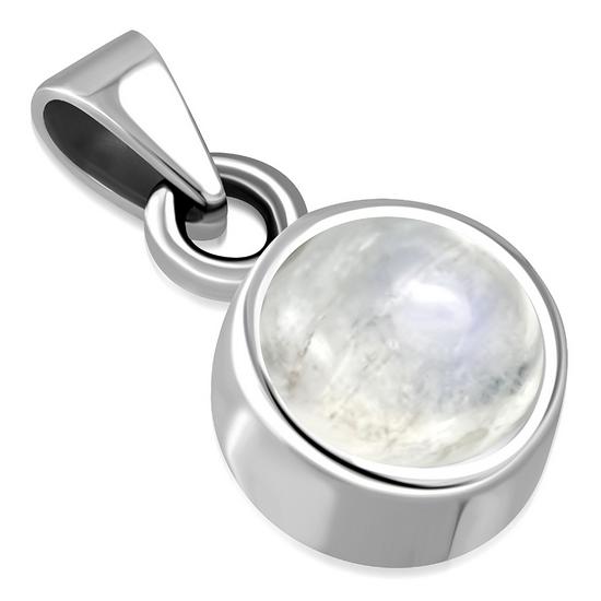 Theme: Rainbow Moonstone Round Silver Pendant.