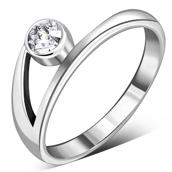 Clear CZ Sterling Silver Simple Silver Ring, r256