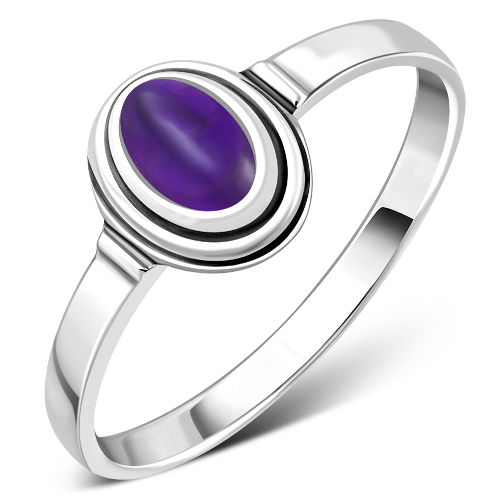 Delicate Ethnic Style Amethyst Stone Silver Ring, r512