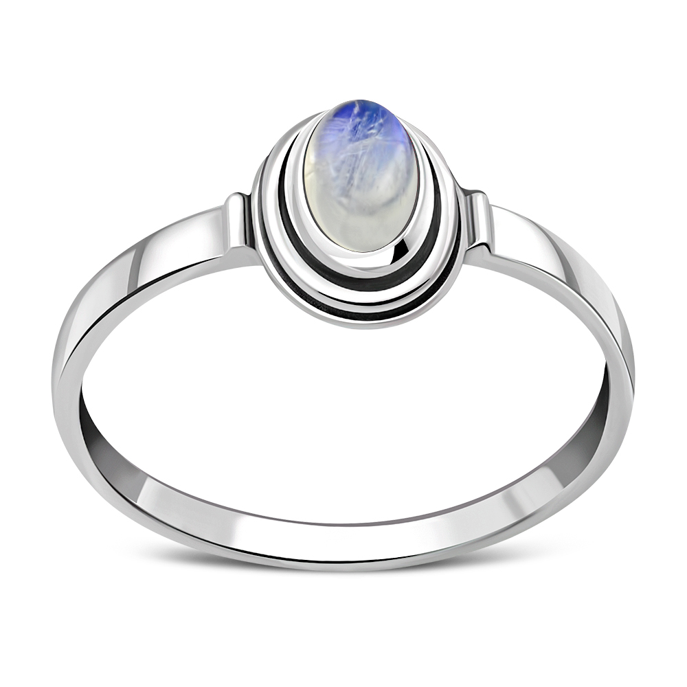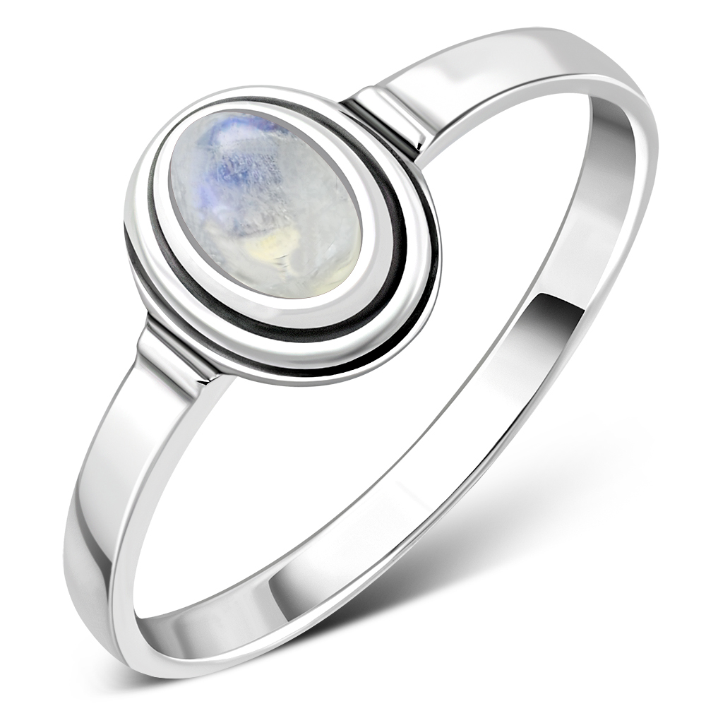 Delicate Ethnic Style Rainbow Moonstone Silver Ring.